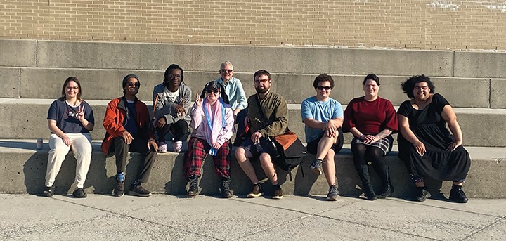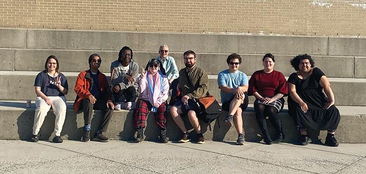 A crowd of students wave pride flags in protest against the controversial visiting religious group.